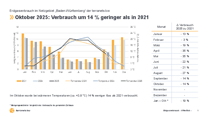 terranets bw veröffentlicht in seinem Lagebericht monatlich den Erdgasverbrauch in seinen Netzgebieten Baden-Württemberg und Hessen.