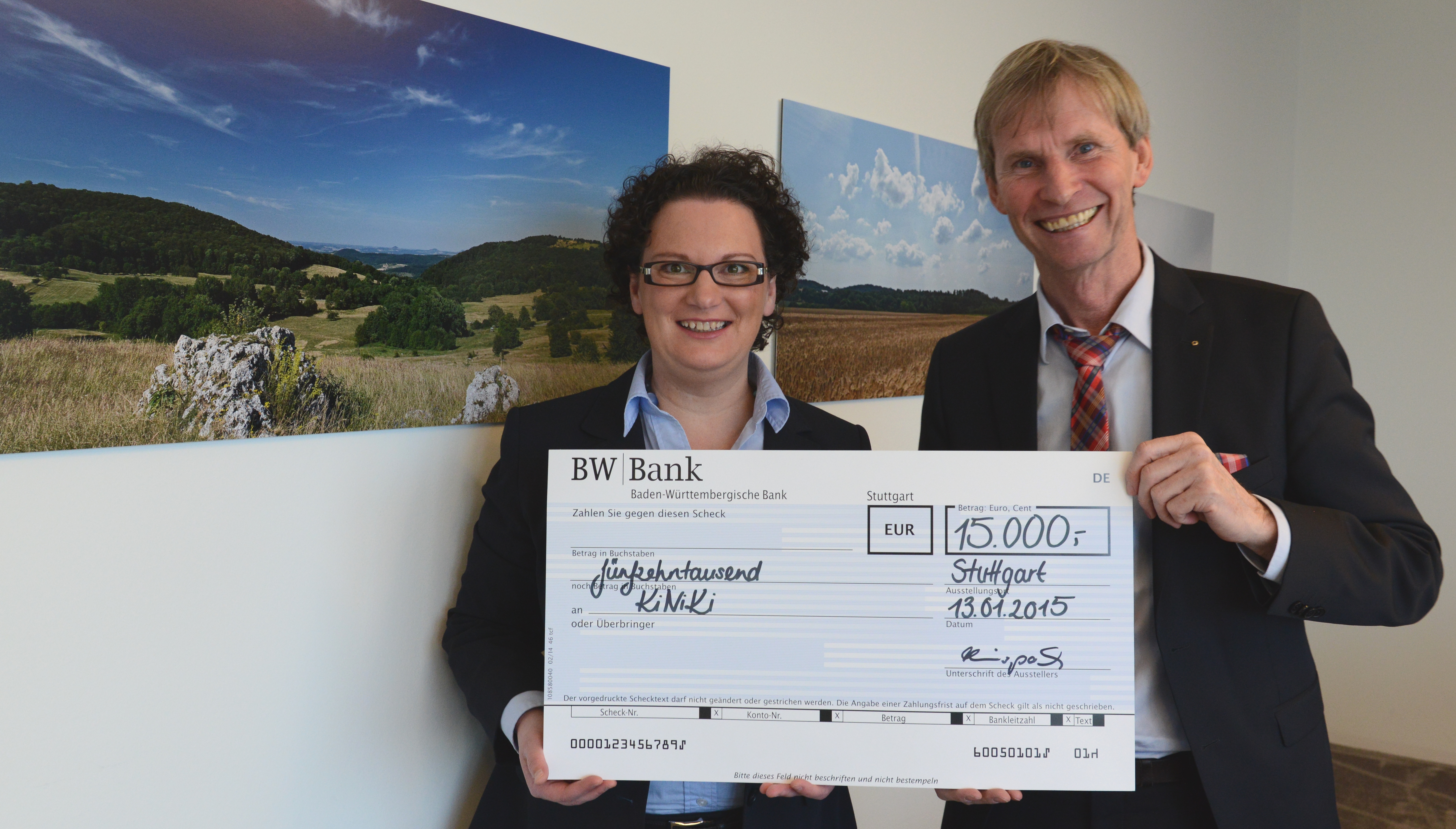 Das Unternehmen terranets bw überreichte am 13.01.2015 einen Scheck in Höhe von 15.000 Euro an die gemeinnützige Organisation KiNiKi, die vor allem Einrichtungen und Projekte der Kinder- und Jugendhilfe in Baden-Württemberg fördert.