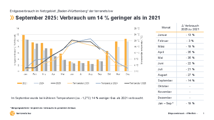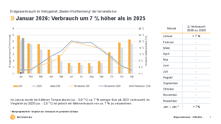 terranets bw publishes the natural gas consumption for its network areas Baden-Württemberg and Hesse in its gas supply status report on a monthly basis.